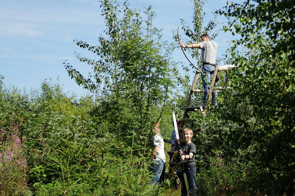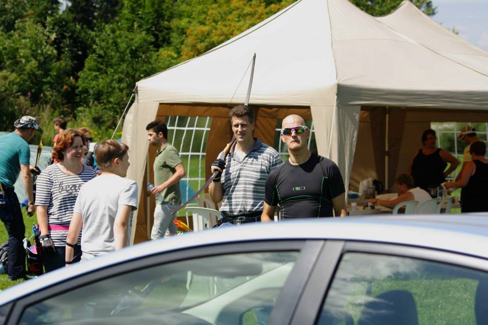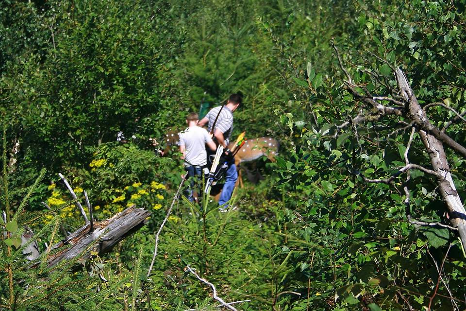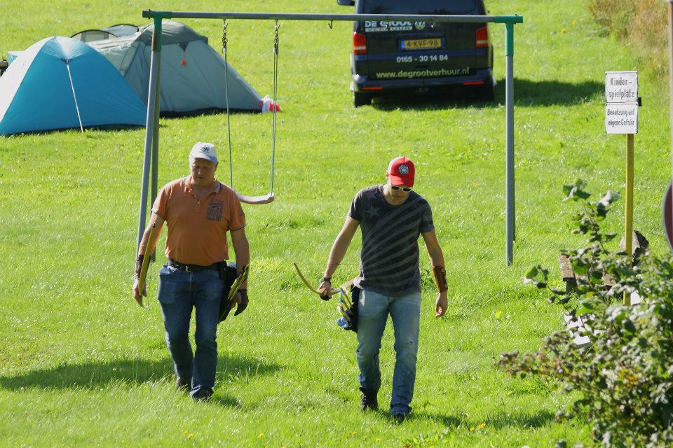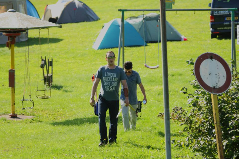 Eenmaal aangekomen werden snel de tenten opgezet om daarna zo snel mogelijk het bos in te trekken en 1 van de 2 schietroutes af te leggen in een poging zoveel mogelijk van de 3d doelen te raken, hier waren de schutters tot in de vroege avond mee zoet waarna ze zich vol overgaven konden storten op de welverdiende avondeten. Gezamenlijk brachten de schutters en aanhang dan de rest van de avond door in en rond de centrale tent waar weer de nodige drankjes en versnaperingen klaar stonden. Ondertussen hadden de vele jeugdschutters nog steeds niet genoeg van het handboogschieten en hebben zich tot aan het donker uitgeleefd met boog en larp pijlen op het nabijgelegen grasveldje.