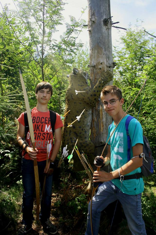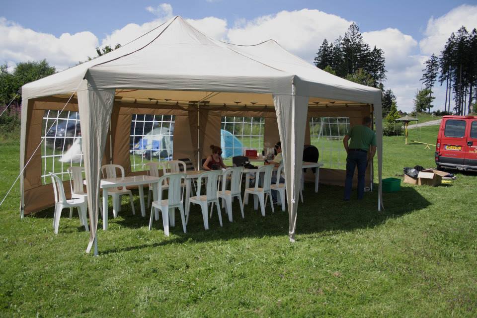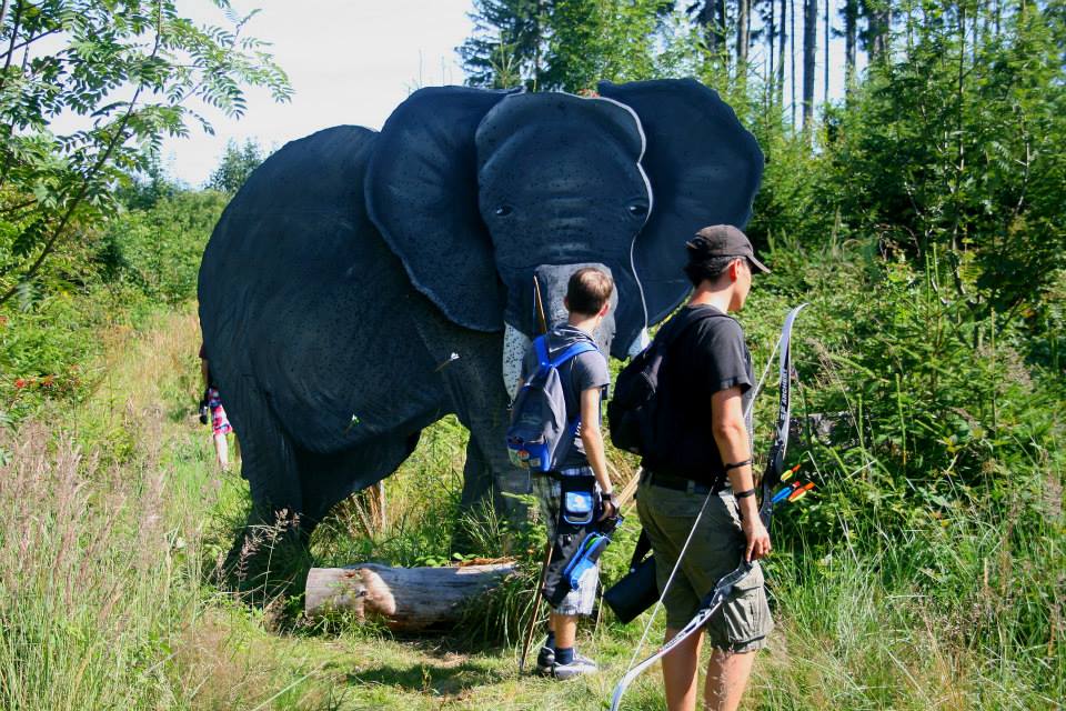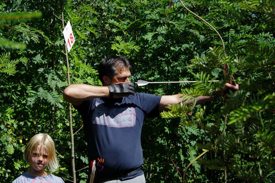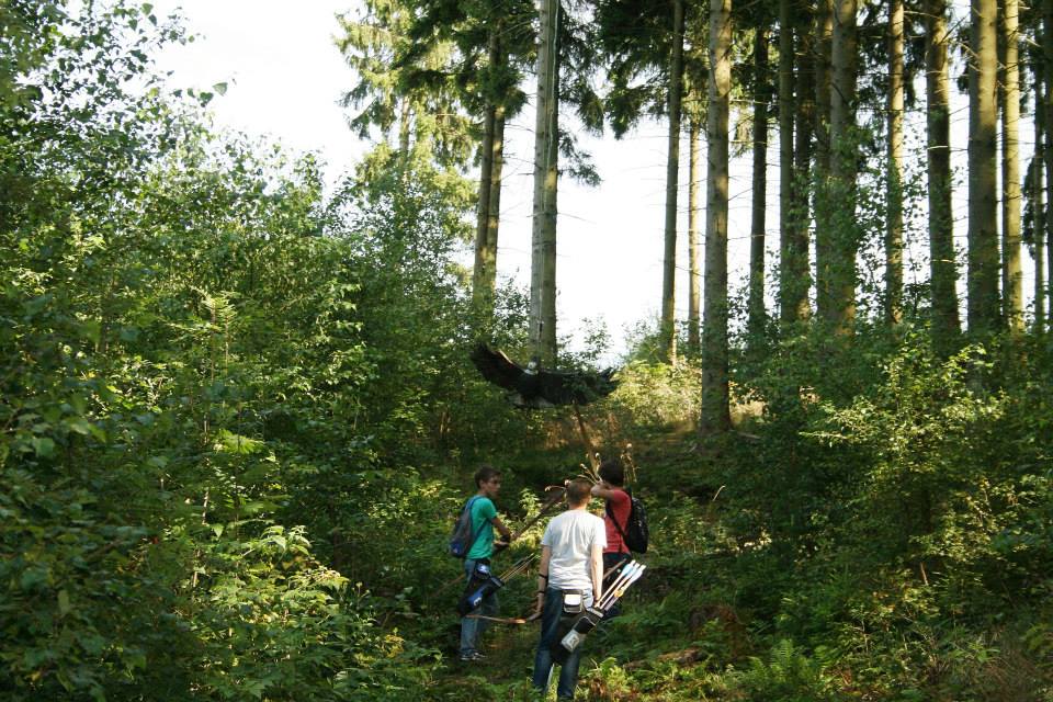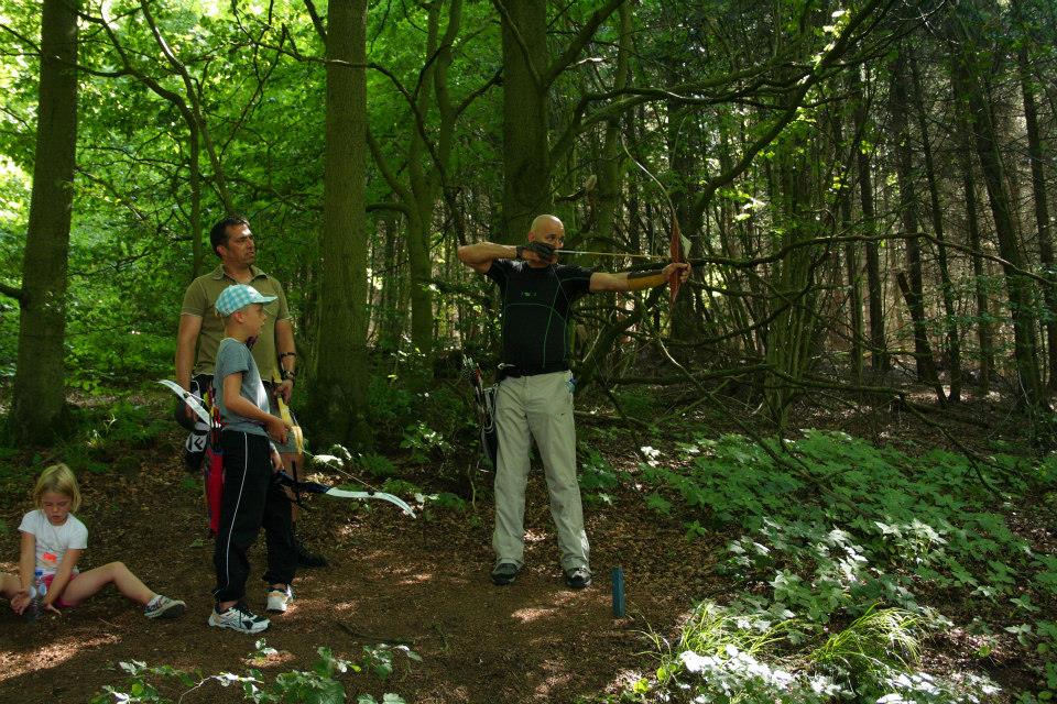 Eenmaal aangekomen werden snel de tenten opgezet om daarna zo snel mogelijk het bos in te trekken en 1 van de 2 schietroutes af te leggen in een poging zoveel mogelijk van de 3d doelen te raken, hier waren de schutters tot in de vroege avond mee zoet waarna ze zich vol overgaven konden storten op de welverdiende avondeten. Gezamenlijk brachten de schutters en aanhang dan de rest van de avond door in en rond de centrale tent waar weer de nodige drankjes en versnaperingen klaar stonden. Ondertussen hadden de vele jeugdschutters nog steeds niet genoeg van het handboogschieten en hebben zich tot aan het donker uitgeleefd met boog en larp pijlen op het nabijgelegen grasveldje.